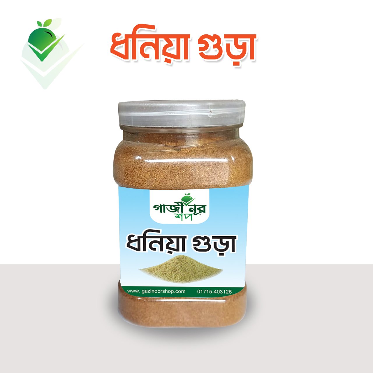 ধনিয়া গুঁড়া হলো প্রাকৃতিক সুগন্ধযুক্ত মসলা, যা খাবারের স্বাদ ও গন্ধ বাড়াতে বিশেষভাবে ব্যবহৃত হয়। এটি ধনিয়া বীজ থেকে তৈরি, যা হজমে সহায়ক এবং স্বাস্থ্যকর।